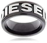 ブランド説明:ディーゼルのデザインは既成の流行を追い求めるものではなく、個性的で斬新なファッションを求めています。常にディテールにこだわり細心の注意を払い、質の良い素材選びや縫製技術に重点をおいています。そして独自の人生を歩む人や、着るもので自分の個性を表現する人々に合うウエアを創造し続けています。シンプルにDIESELロゴが入ったリング。ブラックカラーがクールな印象。